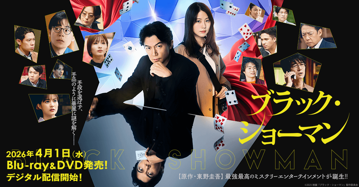 映画『ブラック・ショーマン』公式サイト 2026年4月1日(水)Blu-ray&DVD発売/デジタル配信開始 手段を選ばず、手品のように華麗に謎を解く―― 東野圭吾×福山雅治×有村架純 超豪華タッグが贈る、最強最高のミス...