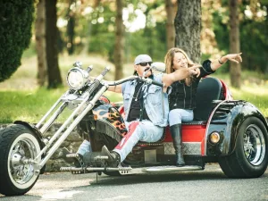 三輪バイクとは、その名の通り、3つのタイヤで構成されたバイクのことです。タイヤの配置は、前輪が1輪で後輪が2輪のタイプと、前輪が2輪で後輪が1輪のタイプの2種類があります。